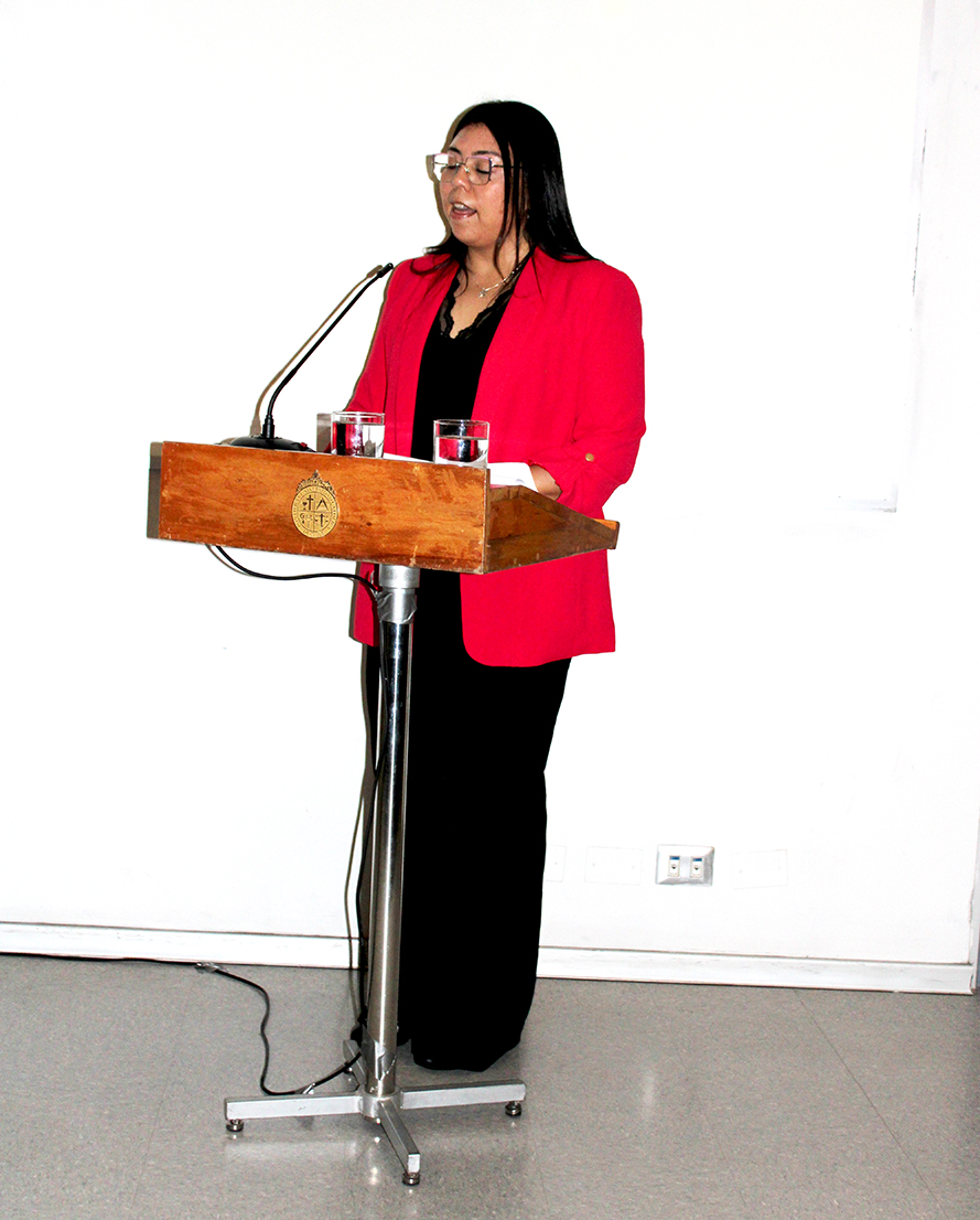 La profesora, Francisca Pozo, representando a los Jefes de Programas, les dijo a los y las profesionales que “al recibir sus certificados están adquiriendo una responsabilidad. La responsabilidad de utilizar los conocimientos adquiridos para hacer una diferencia en el mundo. Hay una palabra que uno a los tres programas y esa palabra es integral, esto refleja la necesidad de cómo abordar, trabajar y mirar a las personas. Por lo tanto, como profesionales, tienen la capacidad y el deber de contribuir al desarrollo de nuestra sociedad desde una mirada integral”.