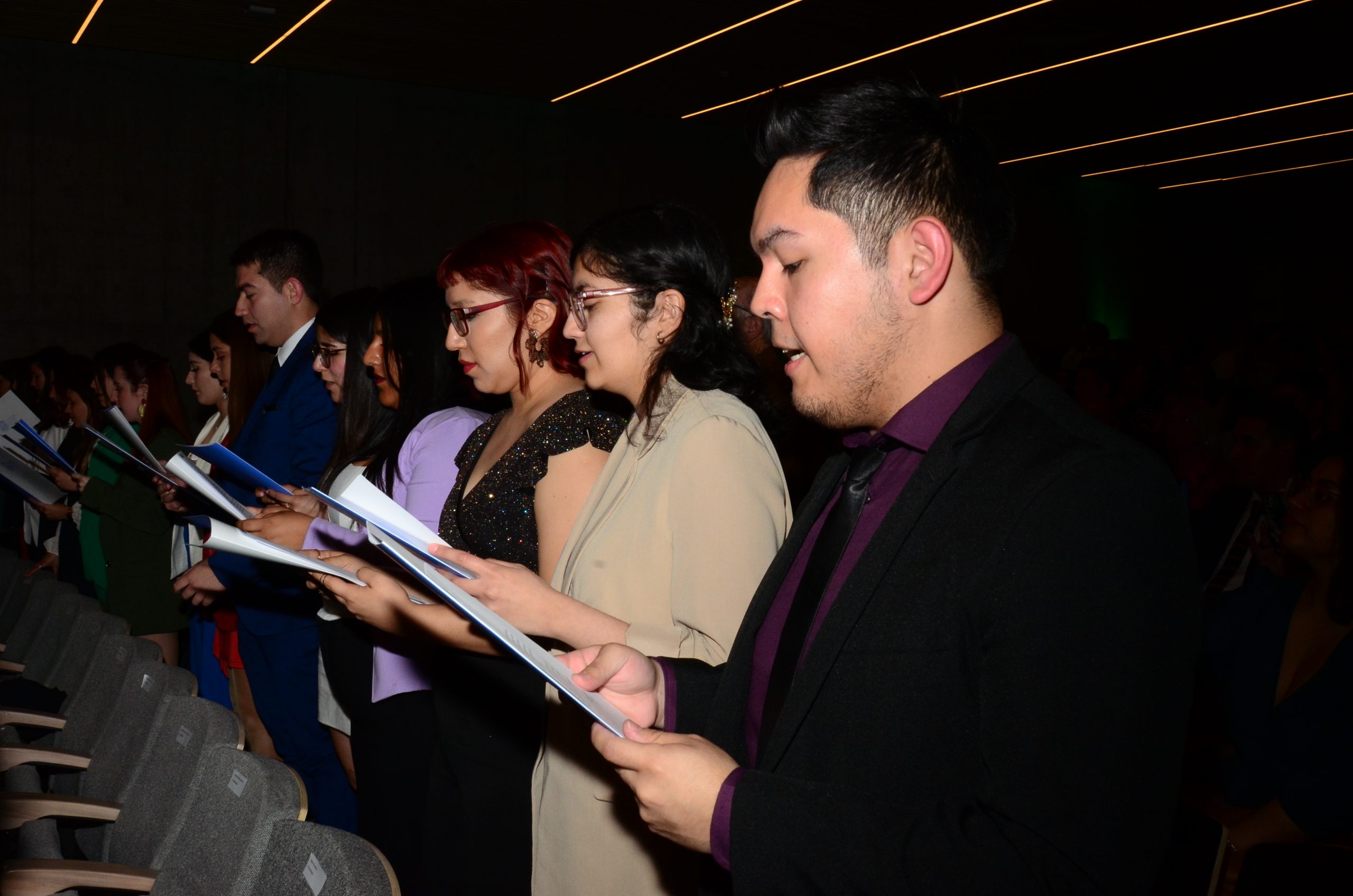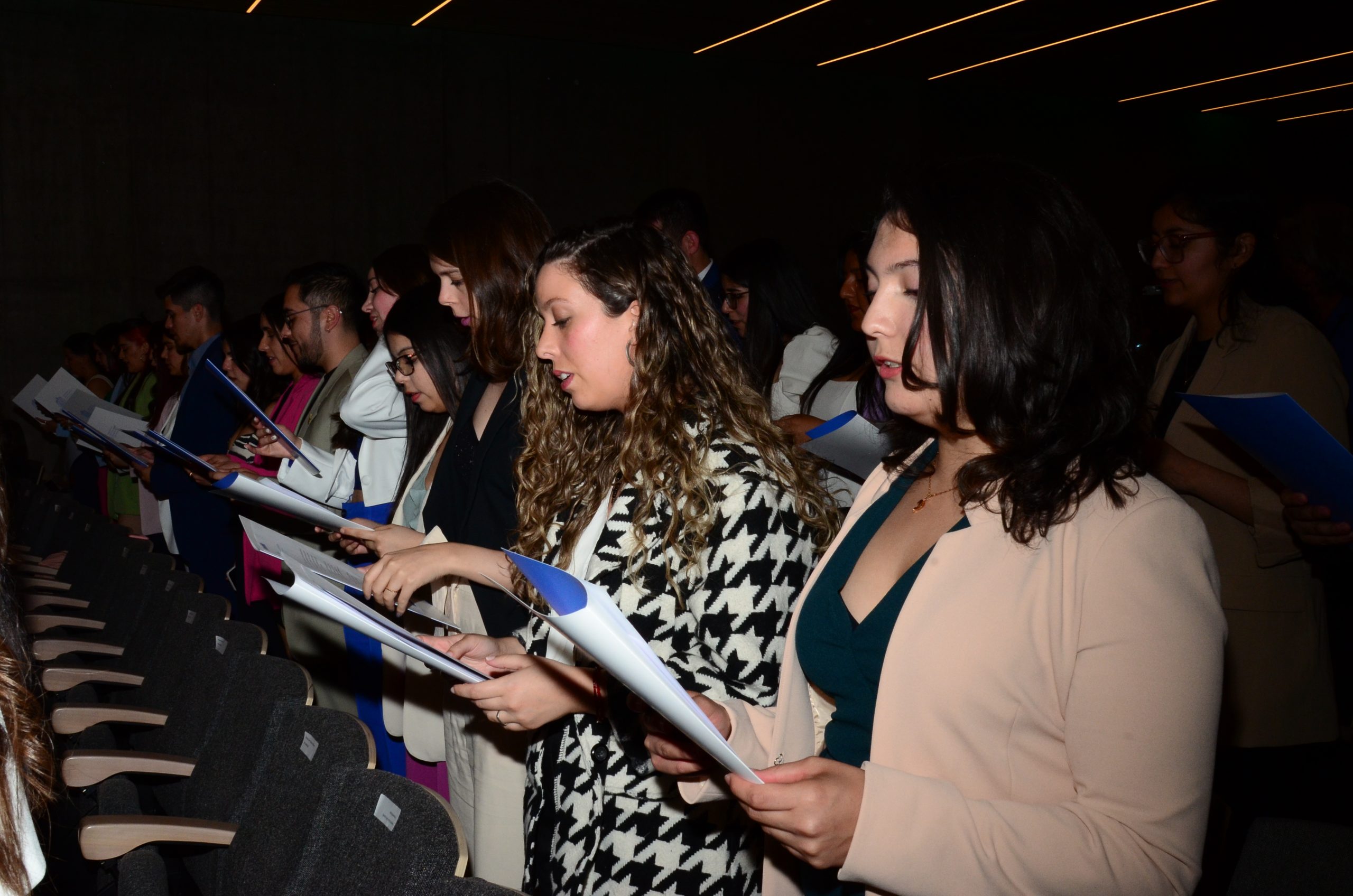Tras el discurso, el Decano, tomó el juramento, previo a la entrega de diplomas, a las y los egresados de la carrera de Fonoaudiología.